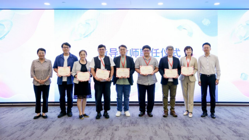 教師聘任儀式上,李秋芳、楊懿為來自海峽兩岸的20位指導(dǎo)教師頒發(fā)聘書。
