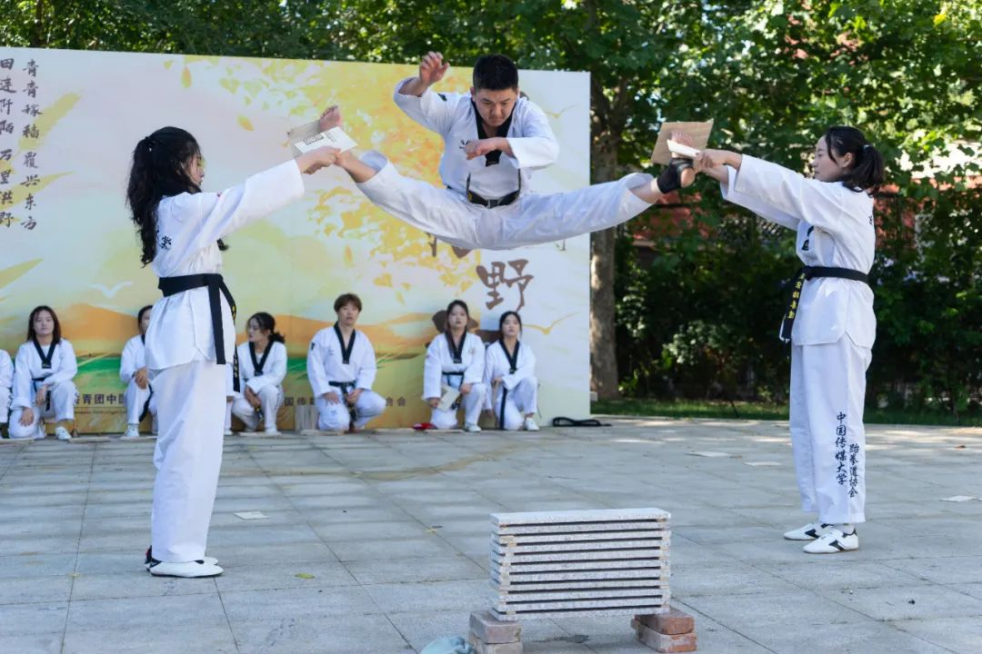 中國傳媒大學跆拳道協會在“百團大戰”現場表演