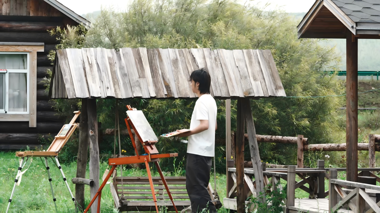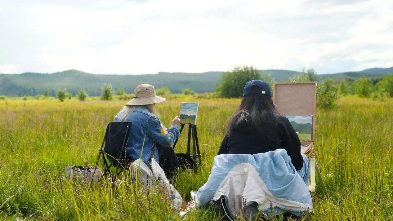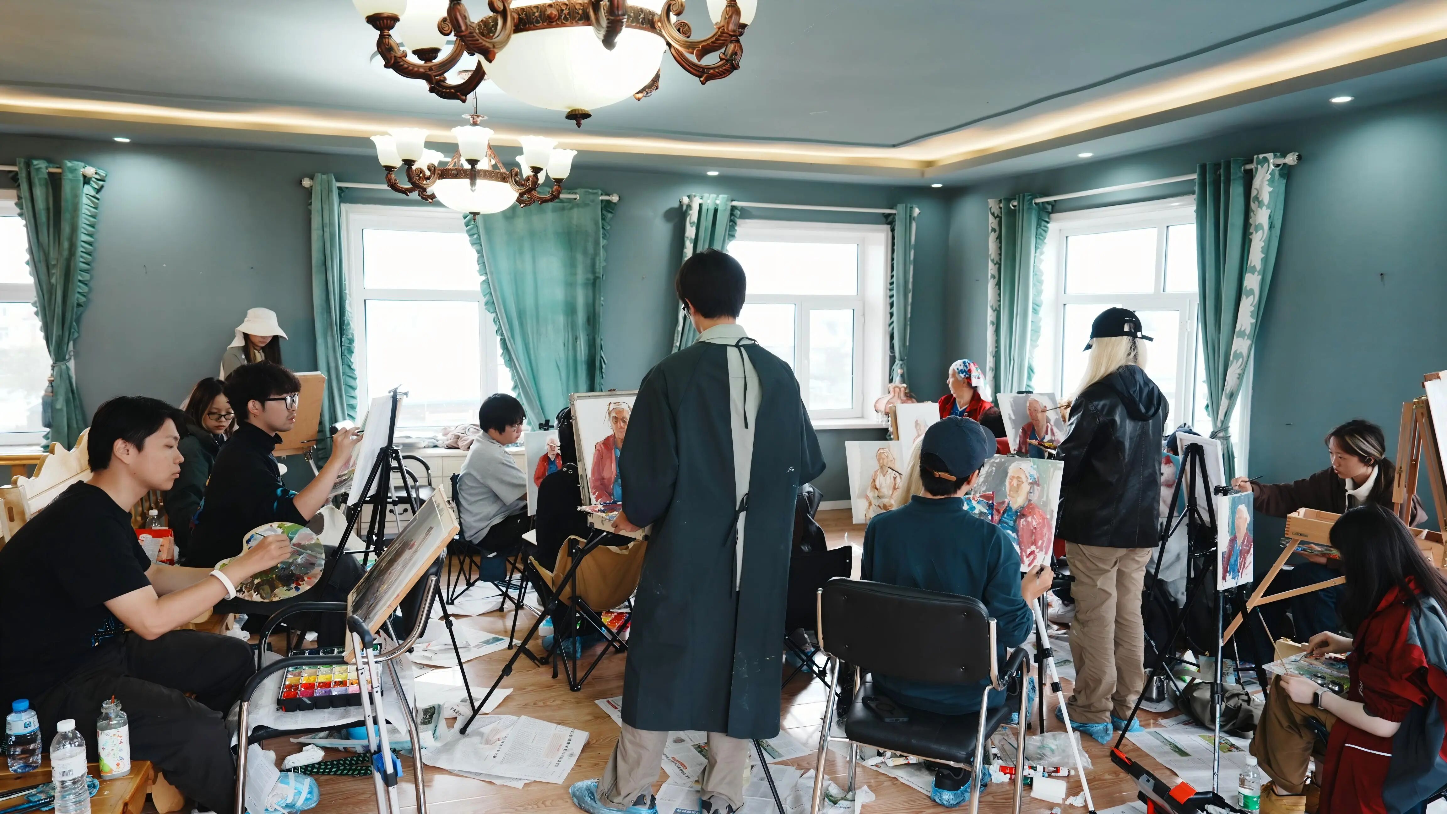 盛夏的恩和,是筆尖與自然的溫柔相遇,更是課堂與大地的深度聯結。十五個晨昏,師生們以大地為課堂,以真心感知風物,讓北疆的靈秀與醇厚,順著筆尖流淌進畫布,讓藝術的生命力,在生活的土壤里深深扎根。十五日寫生光陰,他們行過晨露未晞的草場,造訪哈烏爾河畔靜謐的木刻楞房舍,于瓦蓮金娜奶奶的庭園中聆聽歲月故事,在民俗館的舊物間感悟歷史滄桑。學子們以足跡勘探文化脈絡,借畫筆勾勒生活真諦。彼時,恩和的白樺林綠意正濃,木屋的鐵皮頂輝映著夏日驕陽,此情此景,悉數沉淀為創作中最本真的靈感底色。