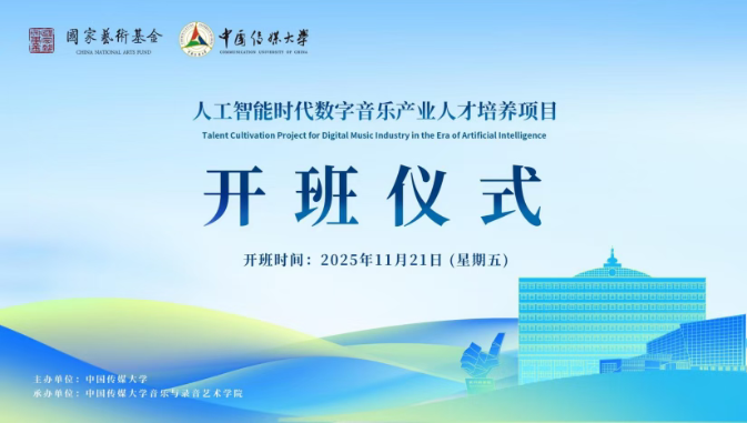 11月21日,國家藝術基金2025年度藝術人才培訓資助項目《人工智能時代數字音樂產業人才培養》開班儀式在中傳學術中心舉行。該項目由中國傳媒大學主辦,中國傳媒大學音樂與錄音藝術學院承辦,旨在服務國家文化數字化戰...