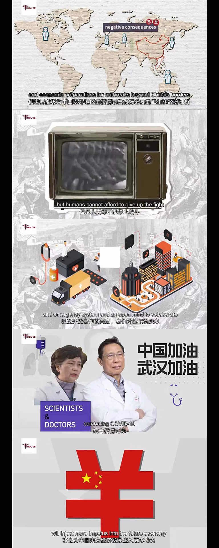 當前,新冠肺炎疫情肆虐全球多國宣布進入緊急狀態(tài),中國在鞏固自身抗“疫”成果的同時陸續(xù)向遭受疫情的國家和地區(qū)伸出了援助之手。為加強抗擊疫情國際合作共建人類命運共同體,中國傳媒大學羅青教授帶領團隊與央視CGTN共同制作了5集抗“疫”短視頻,總結分享中國的抗“疫”經驗助力全球共克時艱。