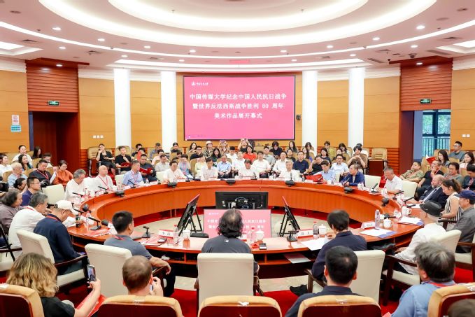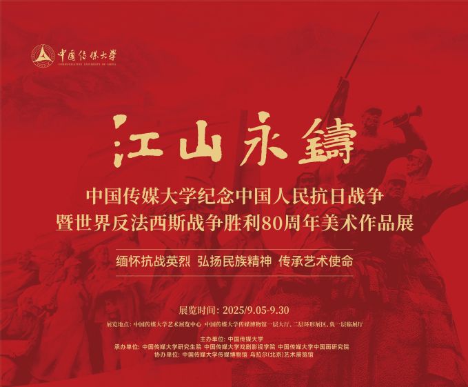 9月5日,中國(guó)傳媒大學(xué)隆重舉行“江山永鑄——緬懷抗戰(zhàn)英烈、弘揚(yáng)民族精神、傳承藝術(shù)使命”紀(jì)念中國(guó)人民抗日戰(zhàn)爭(zhēng)暨世界反法西斯戰(zhàn)爭(zhēng)勝利80周年美術(shù)作品展開幕式與座談會(huì)。此次展覽共展出作品124幅,其中包括中國(guó)畫博士班100名博士生創(chuàng)作的100幅中國(guó)畫作品以及俄羅斯藝術(shù)家們創(chuàng)作的24幅油畫作品。展覽通過主題性藝術(shù)創(chuàng)作,深切緬懷為民族獨(dú)立與世界和平英勇獻(xiàn)身的抗戰(zhàn)英烈,銘記偉大歷史,弘揚(yáng)以愛國(guó)主義為核心的民族精神,展現(xiàn)新時(shí)代藝術(shù)教育工作者傳承紅色基因、賡續(xù)歷史文脈的使命擔(dān)當(dāng)。