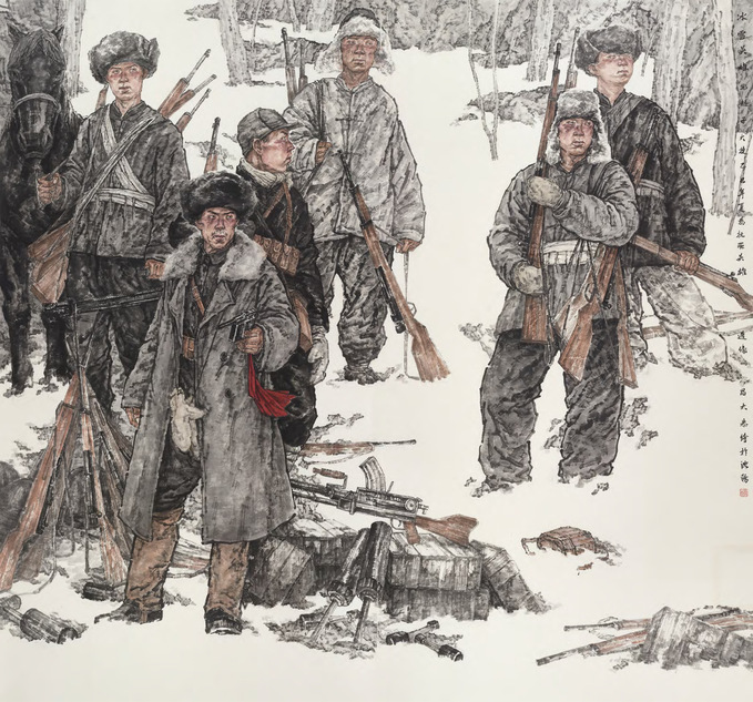 ▲ 《雪嶺松樺映忠魂》作者:逯國(guó)平 導(dǎo)師:盧禹舜