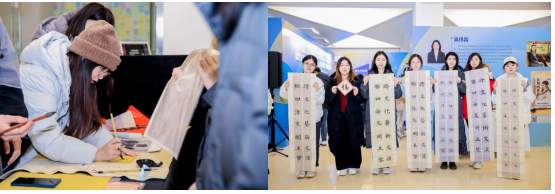 現場的皮影、臉譜體驗區,以及由中國傳媒大學外國語言文化學院“雅涵書院”組織的書法體驗區,成為展覽的互動焦點。觀眾們通過親手操作皮影、繪制臉譜和書寫書法,直觀領略非遺藝術的魅力。這些環節巧妙融合了精巧的造型、絢麗的紋飾與沉浸式創作,促進跨文化藝術的交流與共鳴。