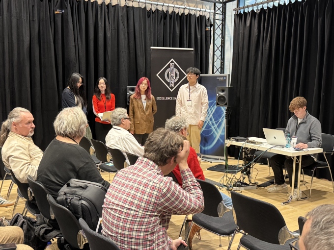 德國錄音師協會作為歐洲音頻行業的權威專業組織,其雙年會(Tonmeistertagung)自1949年首屆大會以來,始終引領全球專業音頻行業的創新發展。該雙年大會是我校和歐洲兄弟院校持續關注的專業國際頂會,往屆中國師生投稿入選率極低,2023年,袁邈桐教授開辟了中國之音專場的分論壇平臺,為我國的師生打開了國際會議的大門。在第一屆中國之音專場中,本校青年教師劉韌、本科生吳旭誠、研究生周詩樺的作品得到了專場展示和討論;2025年的第二屆中國之音專場分論壇還吸引到了中央音樂學院、上海音樂學院、浙江音樂學院師生的積極投稿和參與。本屆會議匯聚了全球音頻領域的頂尖學者與從業者,中國傳媒大學師生團隊的表現尤為突出。在第二屆“中國之音”專場分論壇中,袁邈桐教授帶領音樂與錄音藝術學院學生梯隊展示了多項創新成果。