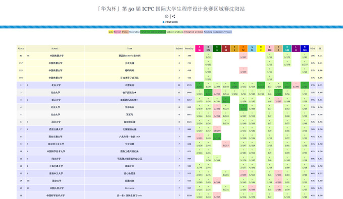 11月16日,ICPC亞洲區域賽(沈陽)在東北大學舉辦,來自北京大學、中山大學、浙江大學、香港中文大學、中國傳媒大學等200多所高校的411支隊伍參與角逐。我校計算機與網絡空間安全學院2024級計算機科學與技術專業李善朔、信息與通信工程學院2024級數字媒體技術專業余逸陽、信息與通信工程學院2024級數字媒體技術專業趙俊凱組成的“葬送的acmer與香辛料”代表隊在封榜前不到一小時連破三題,中盤階段頂住題目難度陡增的壓力,于2小時51分攻克K題,最終以4題、第82名的成績摘得銀牌;另一支由信息與通信工程學院2024級數字媒體技術專業馬博浩、信息與通信工程學院2024級數字媒體技術專業張雨姍、信息與通信工程學院2024級通信工程專業朱思彤組成的“天衣無縫”代表隊前期遇阻,在時間緊迫的情況下,3小時57分才解出3題,但隊員們沉著應對,封榜后成功攻克K題,排名大幅躍升,驚險斬獲銅牌。