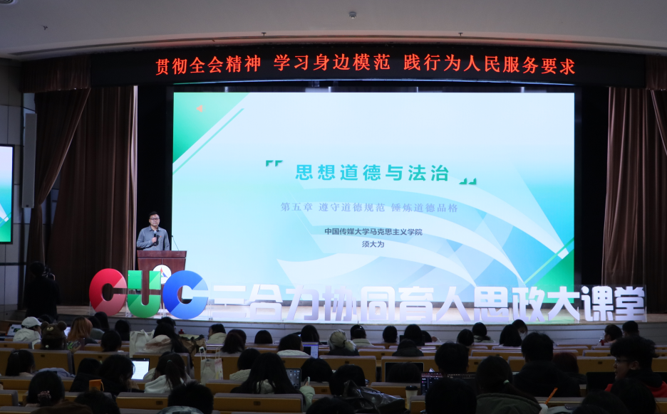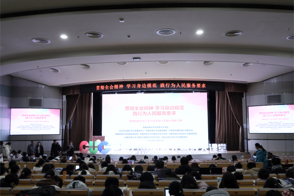 (通訊員 張詩悅 孫靖 須大為 攝影 賀可心 段棲桐)為深入貫徹黨的二十屆四中全會精神,推動思政小課堂與社會大課堂深度融合,12月11日,中國傳媒大學馬克思主義學院舉辦“貫徹全會精神 學習身邊模范 踐行為人民服務要求”三合力協同育人思政大課,260名學生齊聚一堂,在理論與實踐的碰撞中感悟初心使命。